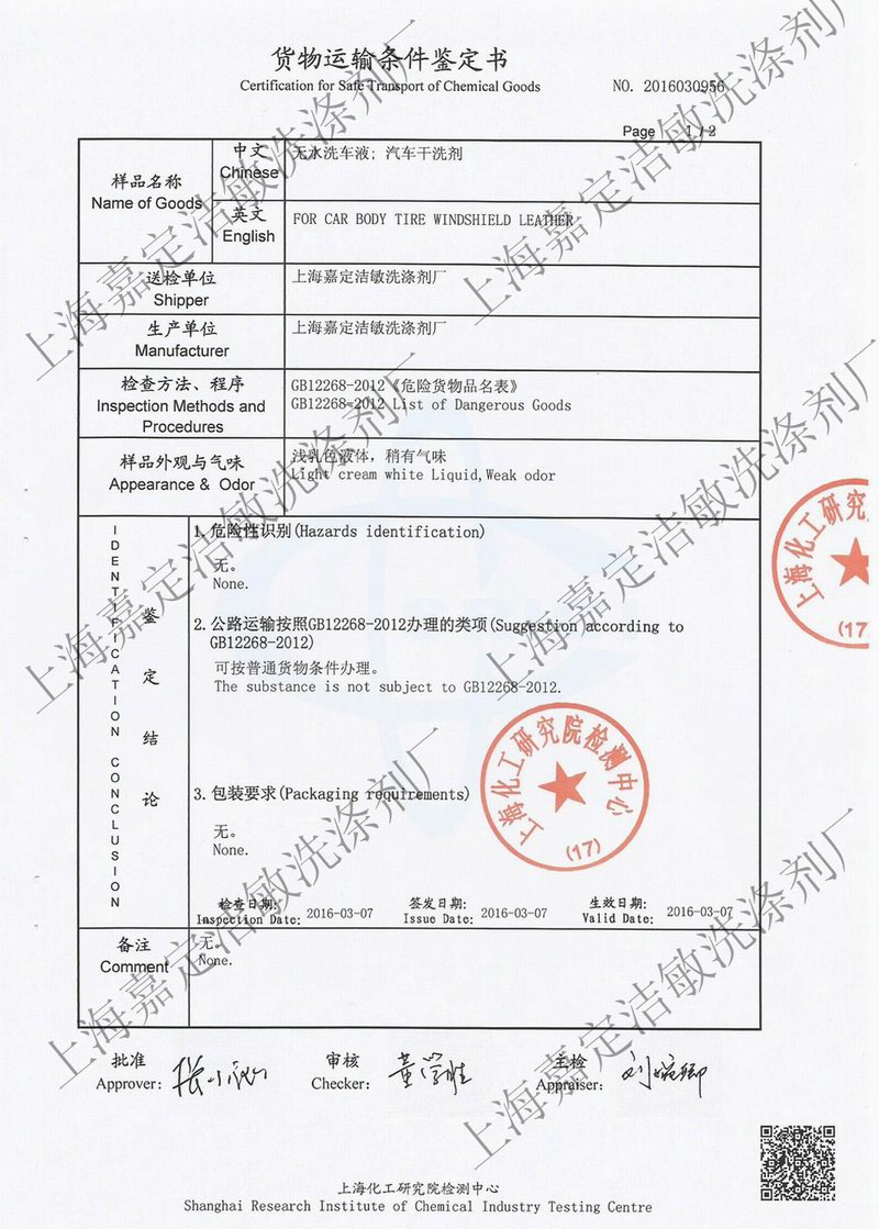 上海嘉定洁敏洗涤剂厂成立于一九九八年,拥有多名高级精细化工工程师。是洗涤剂用品的专业生产厂家,开发、生产技术力量雄厚,一直致力于新品开发不断创新。目前我厂在原有生产宾馆,酒店,商务楼、内外墙清洁等清洗剂产品的基础上.又开发生产了飞机、火车、汽车、轮船等使用的系列专用洗涤剂产品。产品质量稳定,因为专业所以产品质量和售后服务都能得到充分的保证。避免了有些公司不具备研发生产能力而将洗车液产品外发或委托生产所带来的产品质量不稳定性。